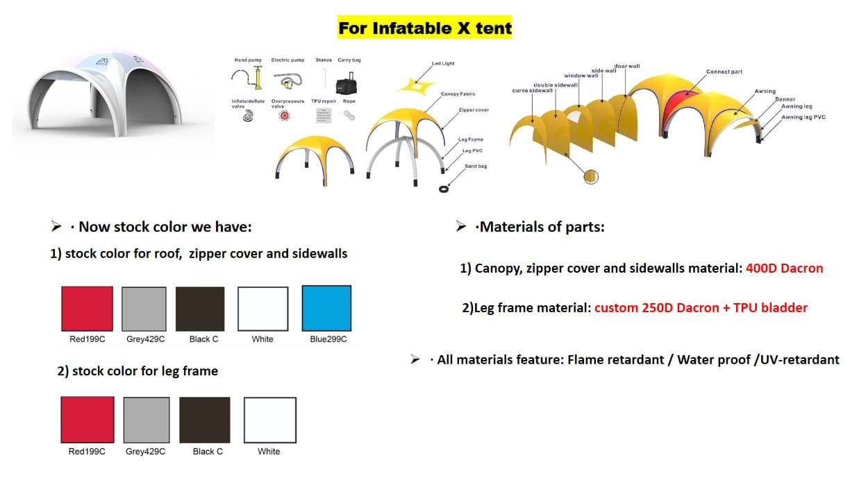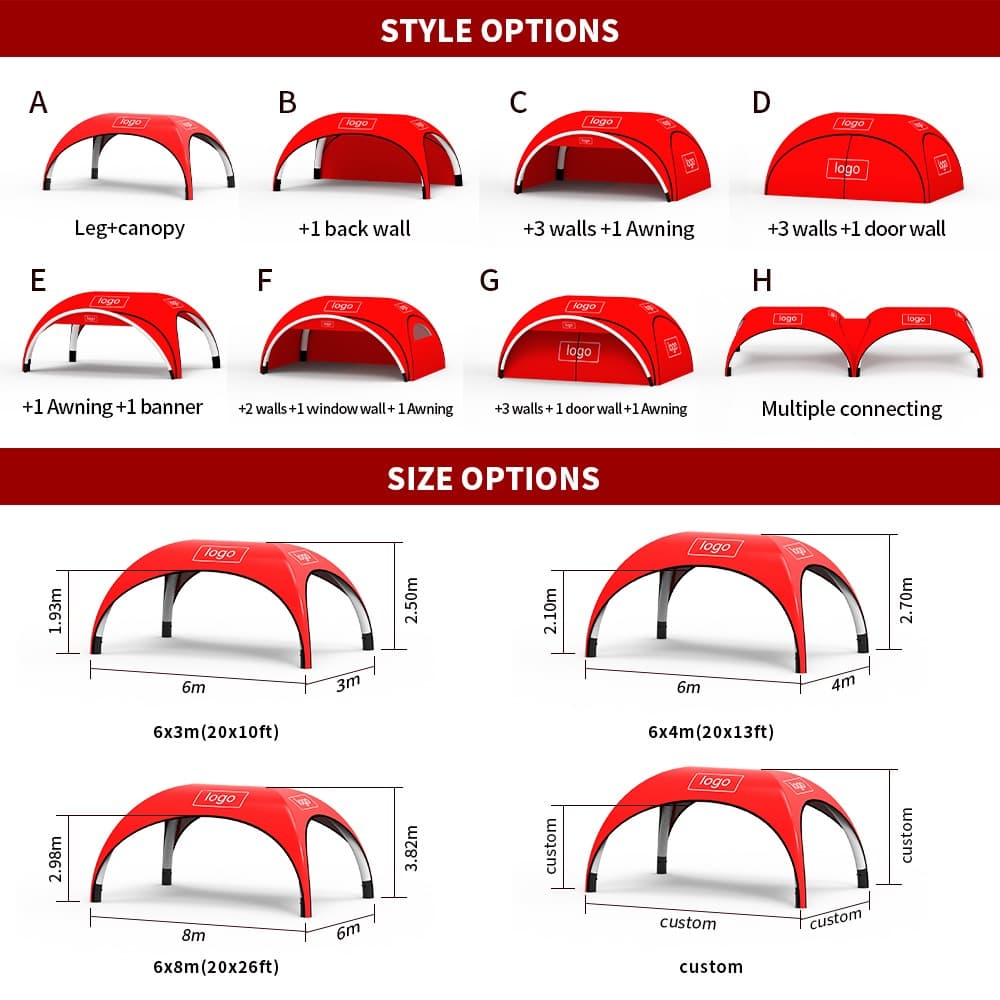 The Airdura system uses air-filled structural legs rather than traditional metal frames. Once inflated, the structure becomes rigid, stable, and weather-resistant, providing a reliable shelter solution that can be deployed quickly and removed just as easily.