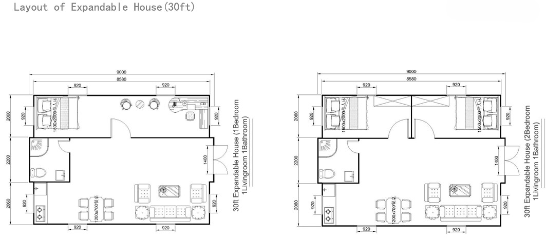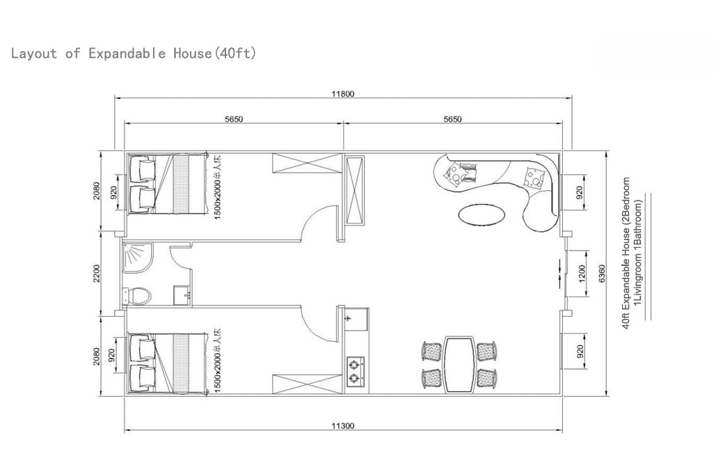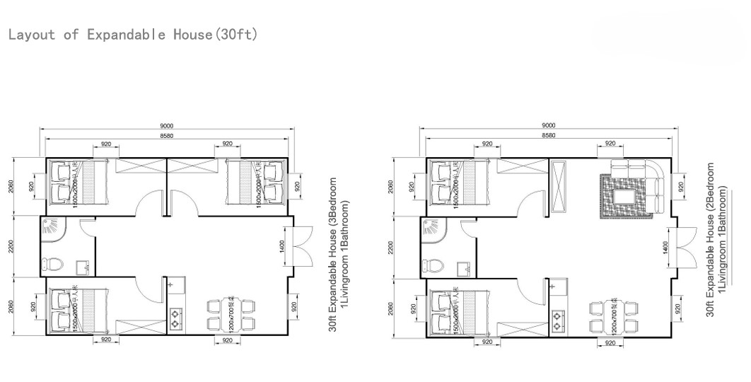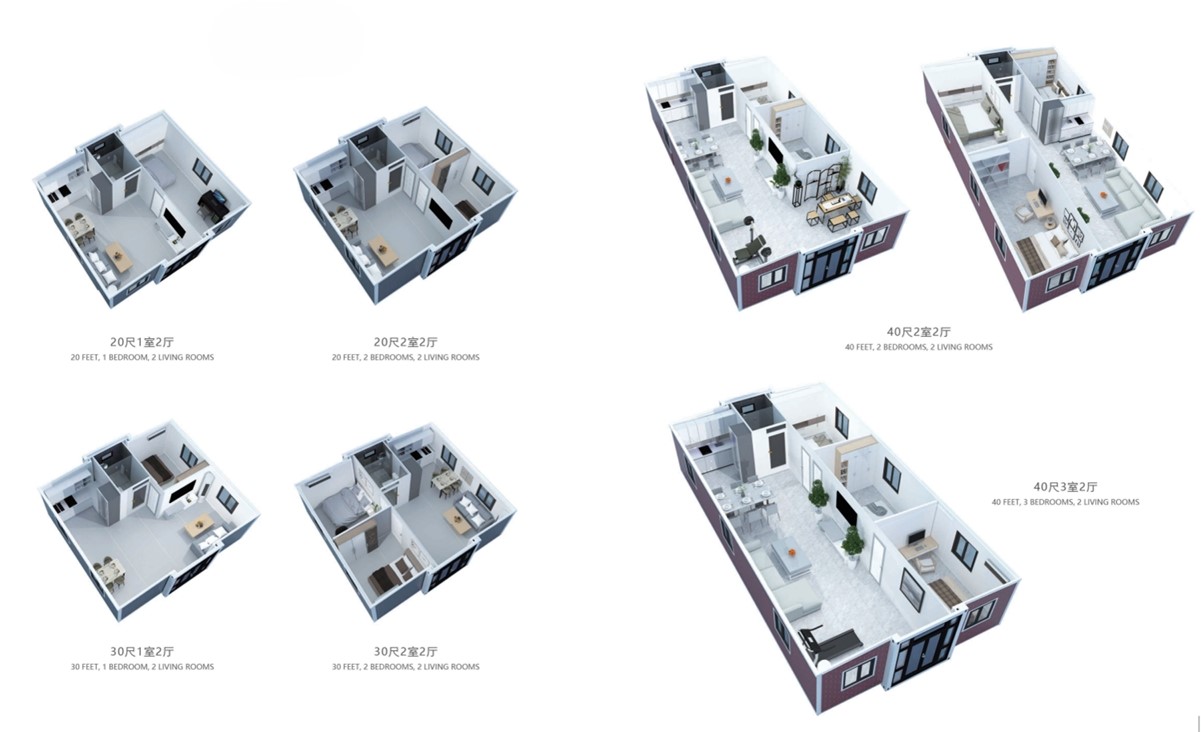 • 20ft Model: Perfect for individuals, couples, or small families. Typically arranged as a two-bedroom home for optimal space utilization.
