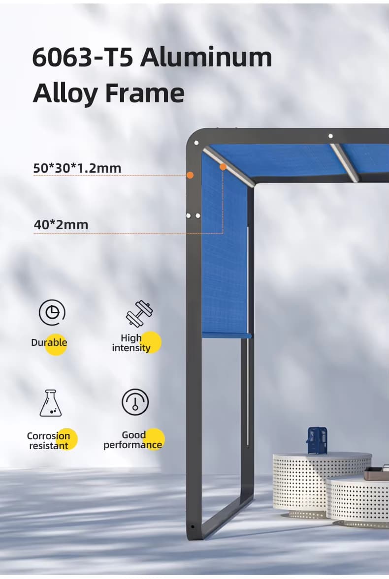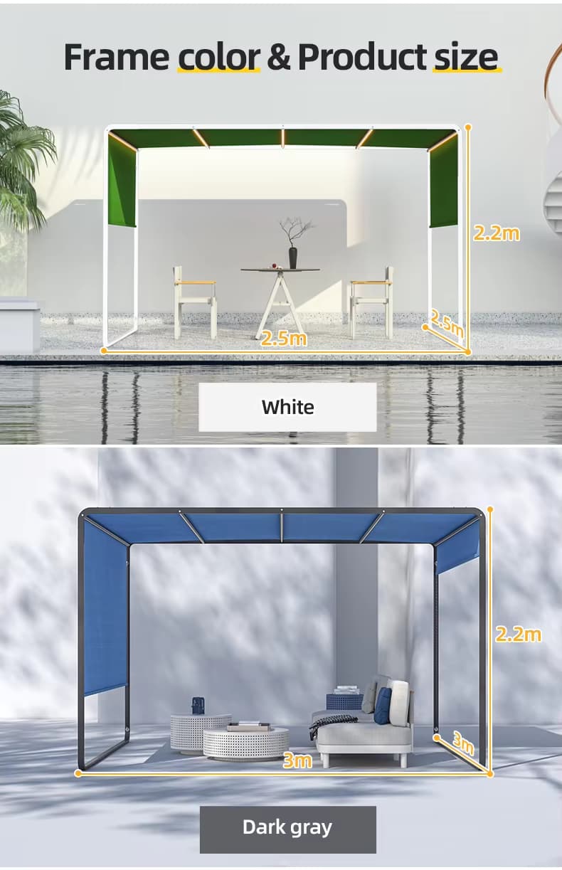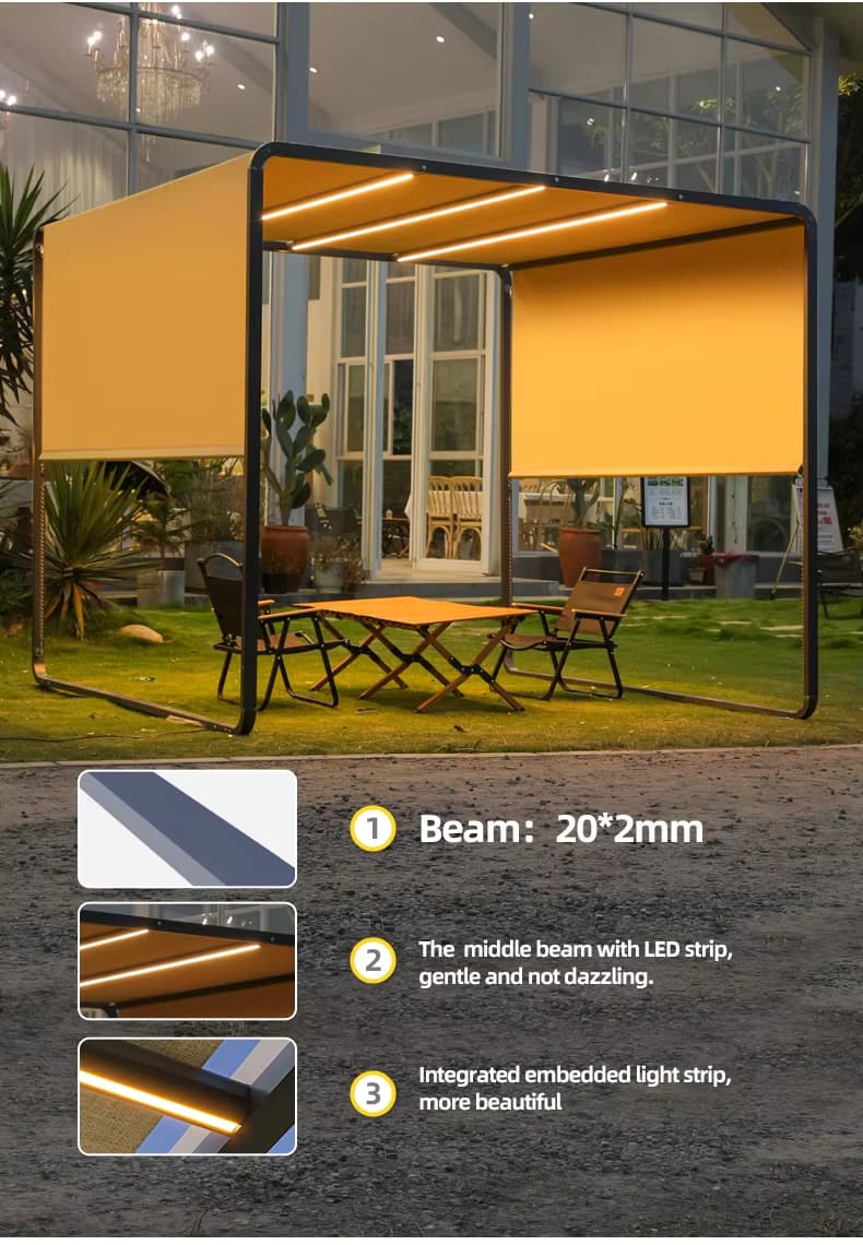 The Aurum Pavilion is a modern open-air shade structure designed for all-weather comfort, combining strength, style, and versatility. Crafted from premium 6063-T5 aluminium alloy, it’s built for lasting outdoor performance in both residential and commercial settings.