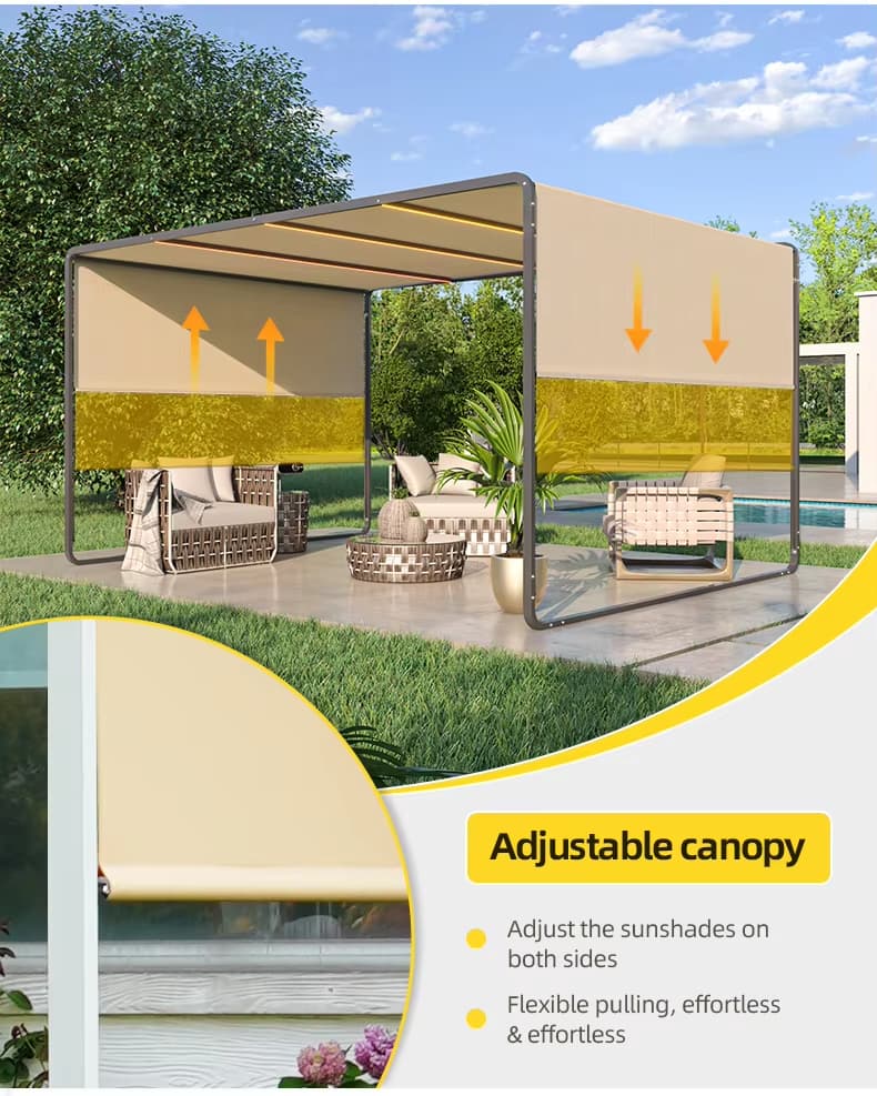 With adjustable canopies on both sides, an integrated LED beam system, and Sunbrella fabric options, the Aurum Pavilion provides flexible shade, superior durability, and a contemporary design.
