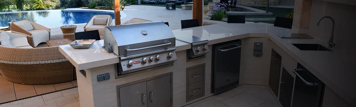 From backyard patios to full-scale architectural outdoor kitchens, Bull BBQ provides everything needed to create a professional-grade cooking environment that blends seamlessly with modern outdoor architecture. Perfect to integrate with the Orion System Series or Cerberus Series Louvre Systems, these high-end outdoor kitchen components complete any outdoor living design.