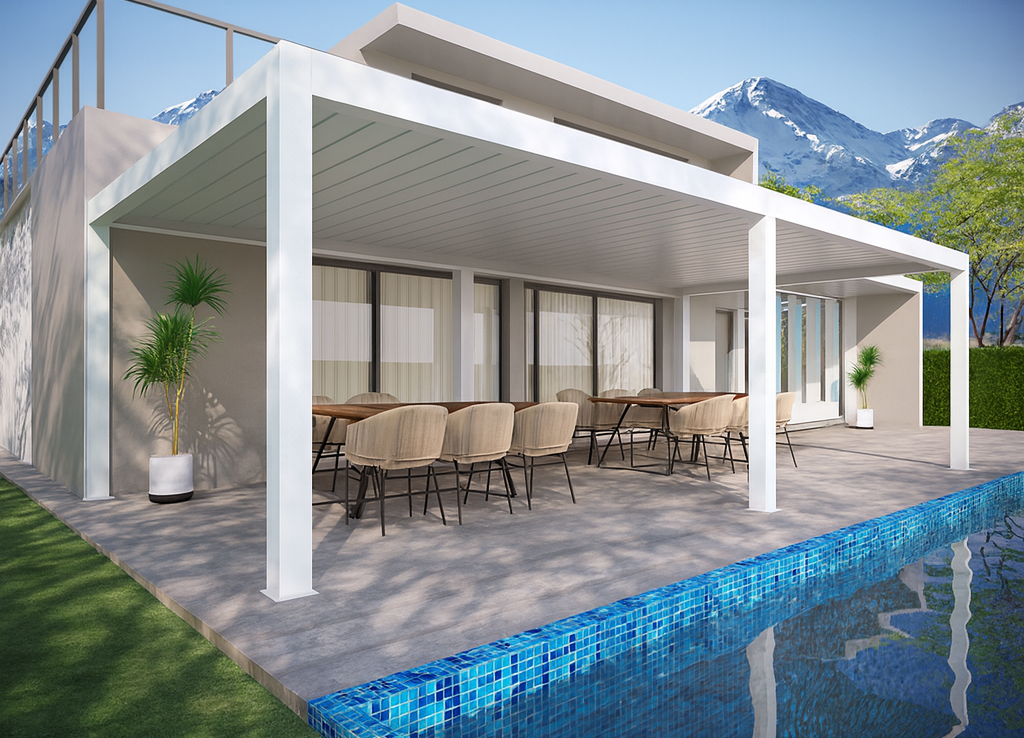 Cerberus Max is the premium evolution of the Cerberus range — a stronger, heavier, and fully made-to-measure louvre roof system designed for clients wanting the next level of performance and structural presence.
