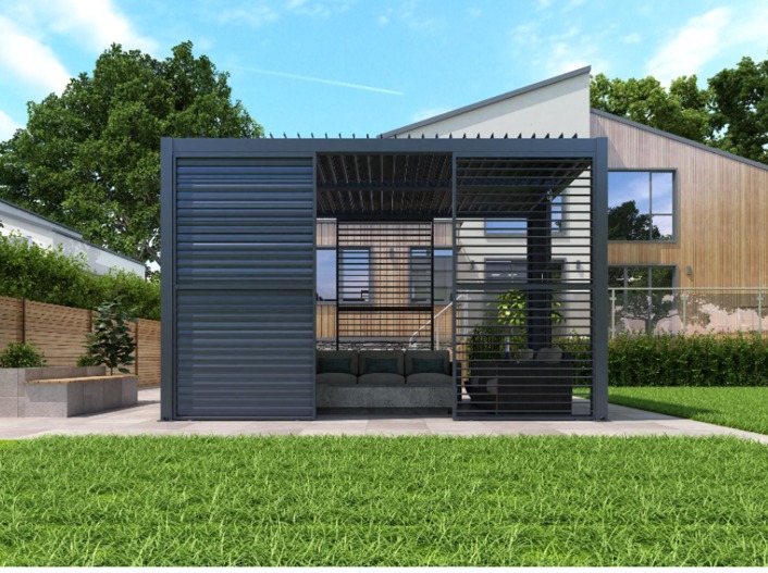 For those who don’t want blinds, louvres, or glass doors, we now offer solid aluminium wall panels.