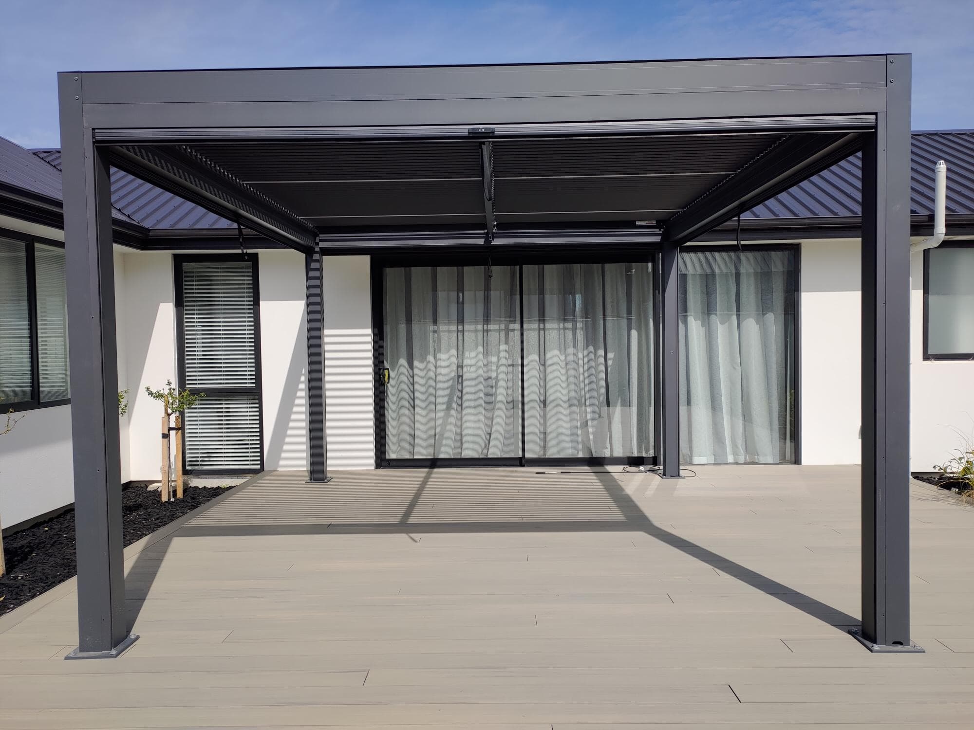 Every Cerberus Plus pergola is engineered from powder-coated aluminium with 304 stainless-steel fixings, ensuring durability in both coastal and inland environments.