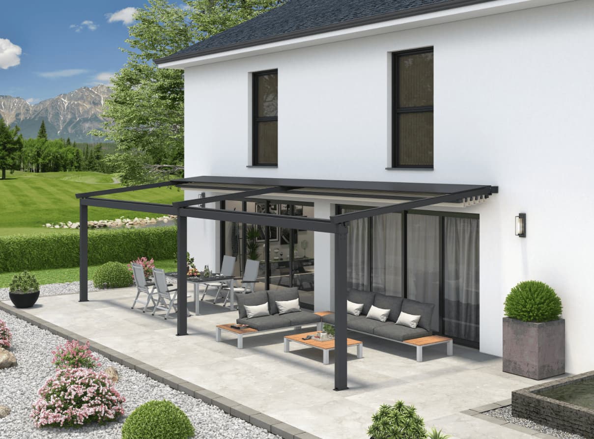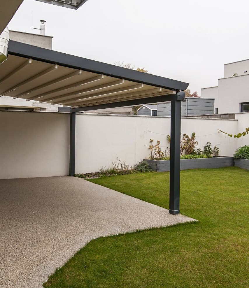 You can also integrate windproof roller shutters, sliding doors, or aluminium louvre panels around the perimeter for added protection and year-round usability.