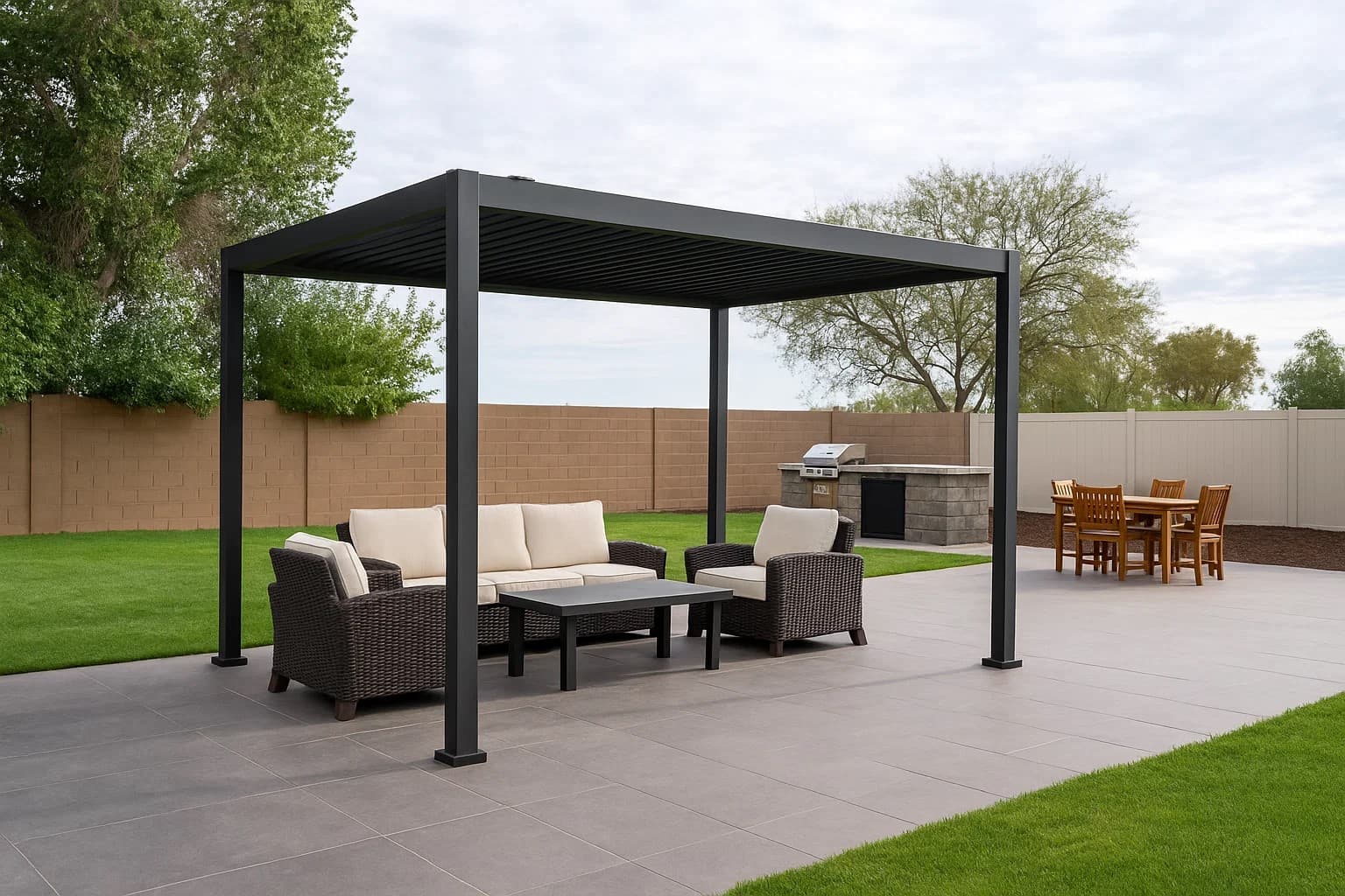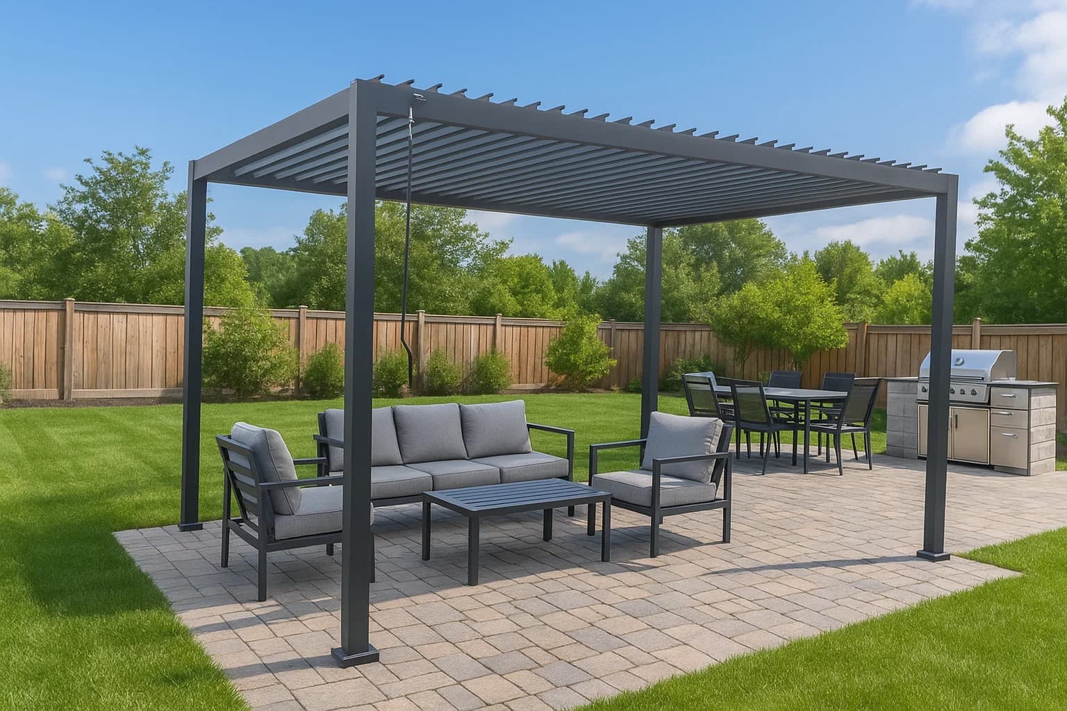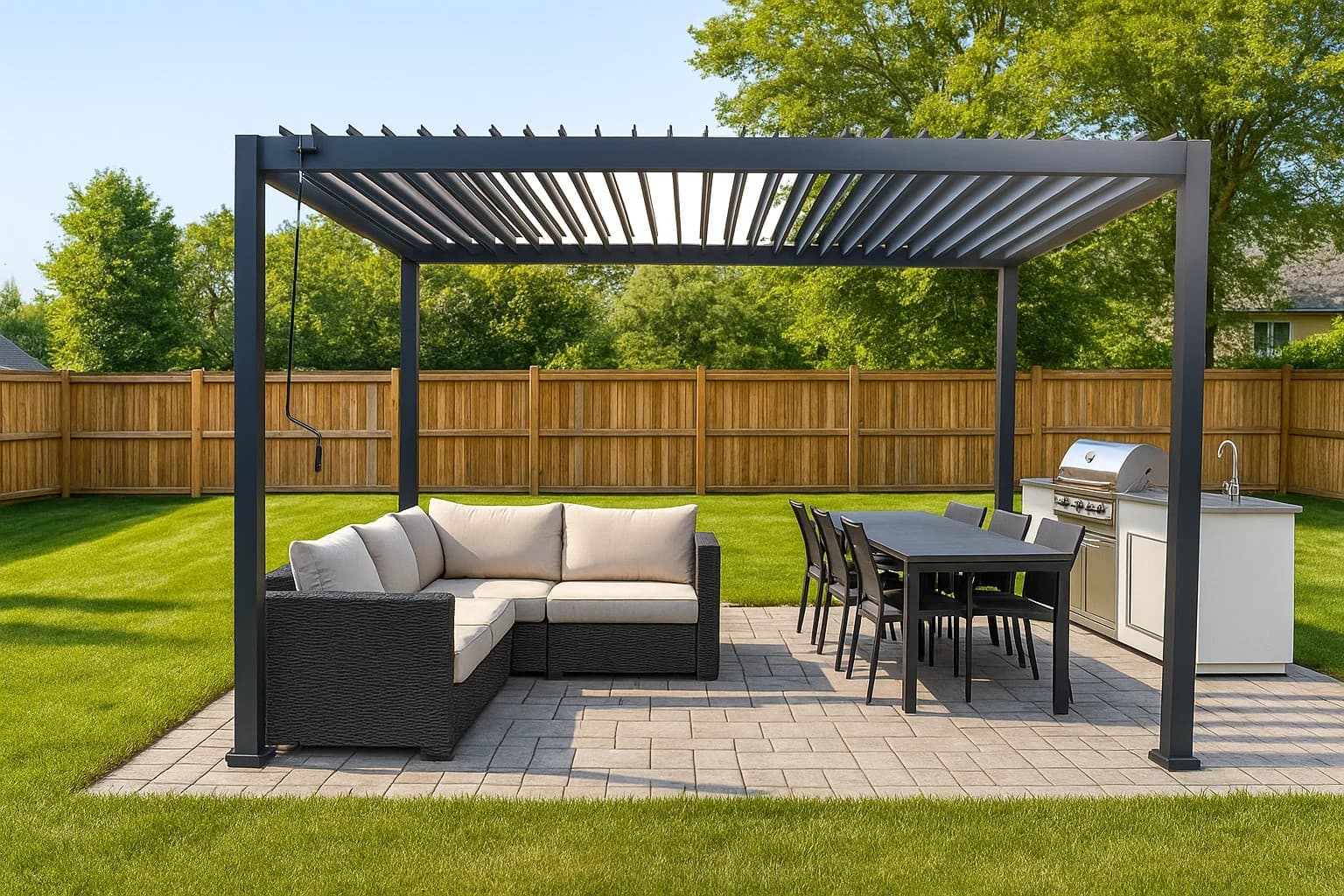 The heavy steel plates anchor each pergola post securely, eliminating the need for bolts or structural modifications. When it’s time to move, the entire system can be disassembled and taken with you.Stability and Safety