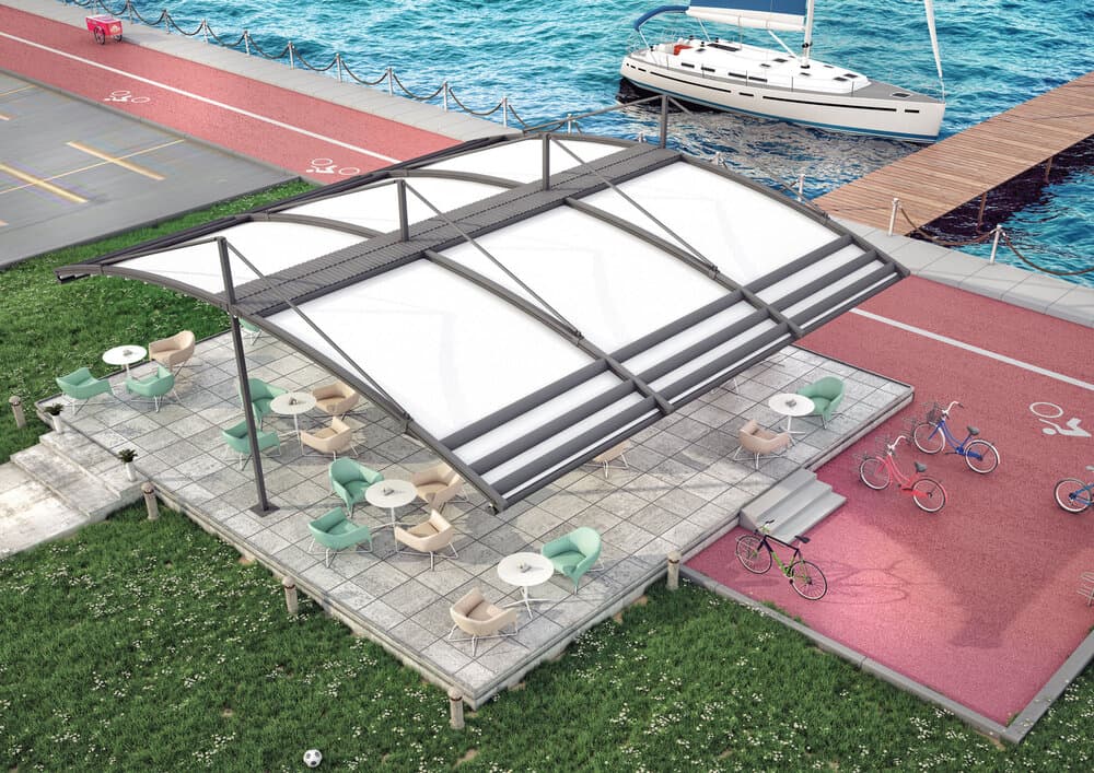 The FALCATE TECTONA is the perfect solution for large, open-air projects—combining engineering strength, architectural sophistication, and smart automation. Whether for a luxury resort or a private villa, it creates a comfortable, stylish, and all-season outdoor environment.