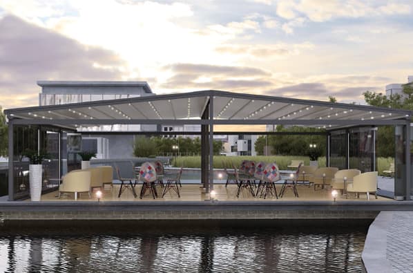 With a maximum façade width of 13,500 mm and maximum expansion of 10,000 mm, the Falcate Tectona covers up to 135 m² in a single module—making it perfect for resorts, restaurants, courtyards, or grand terraces.