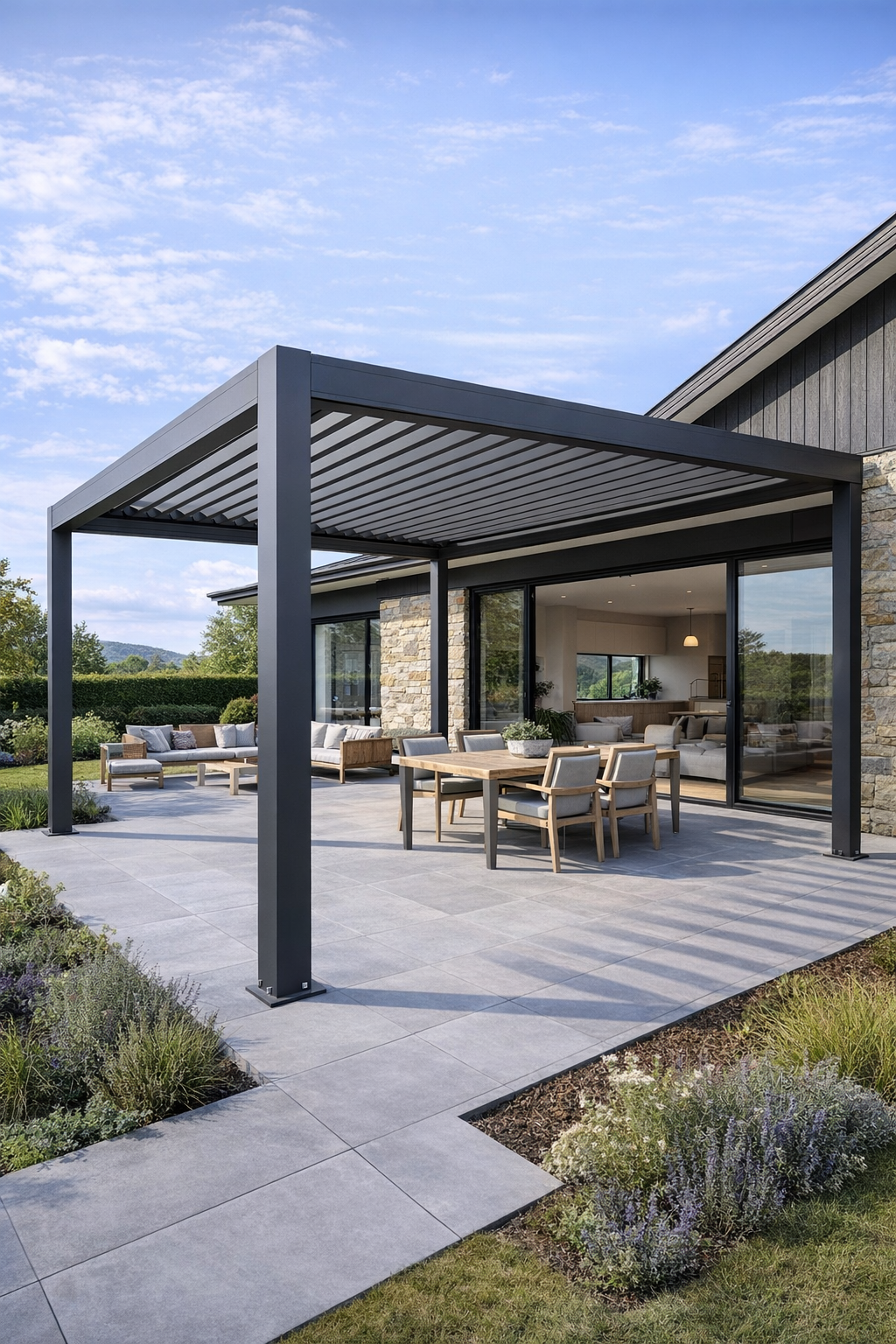 Many projects now sit between lightweight DIY pergolas and fully bespoke construction.