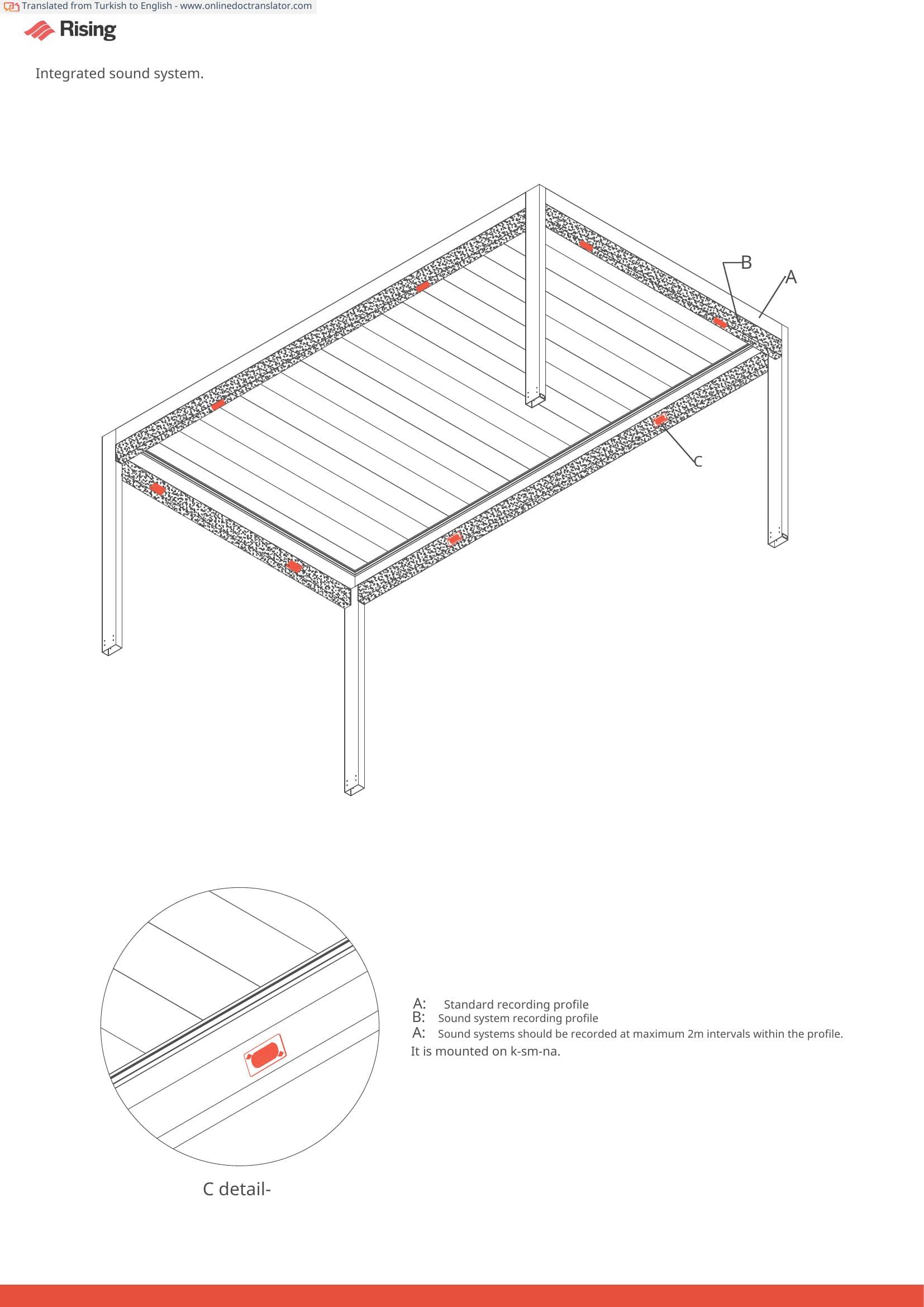 Profile Integration: The sound system mounts internally within the K-SM-NA profile, ensuring concealed wiring and consistent alignment with the pergola frame.