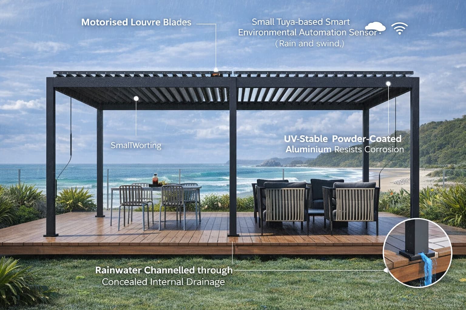 But one of the most critical — and most overlooked — elements of any aluminium louvre pergola system is the hardware: