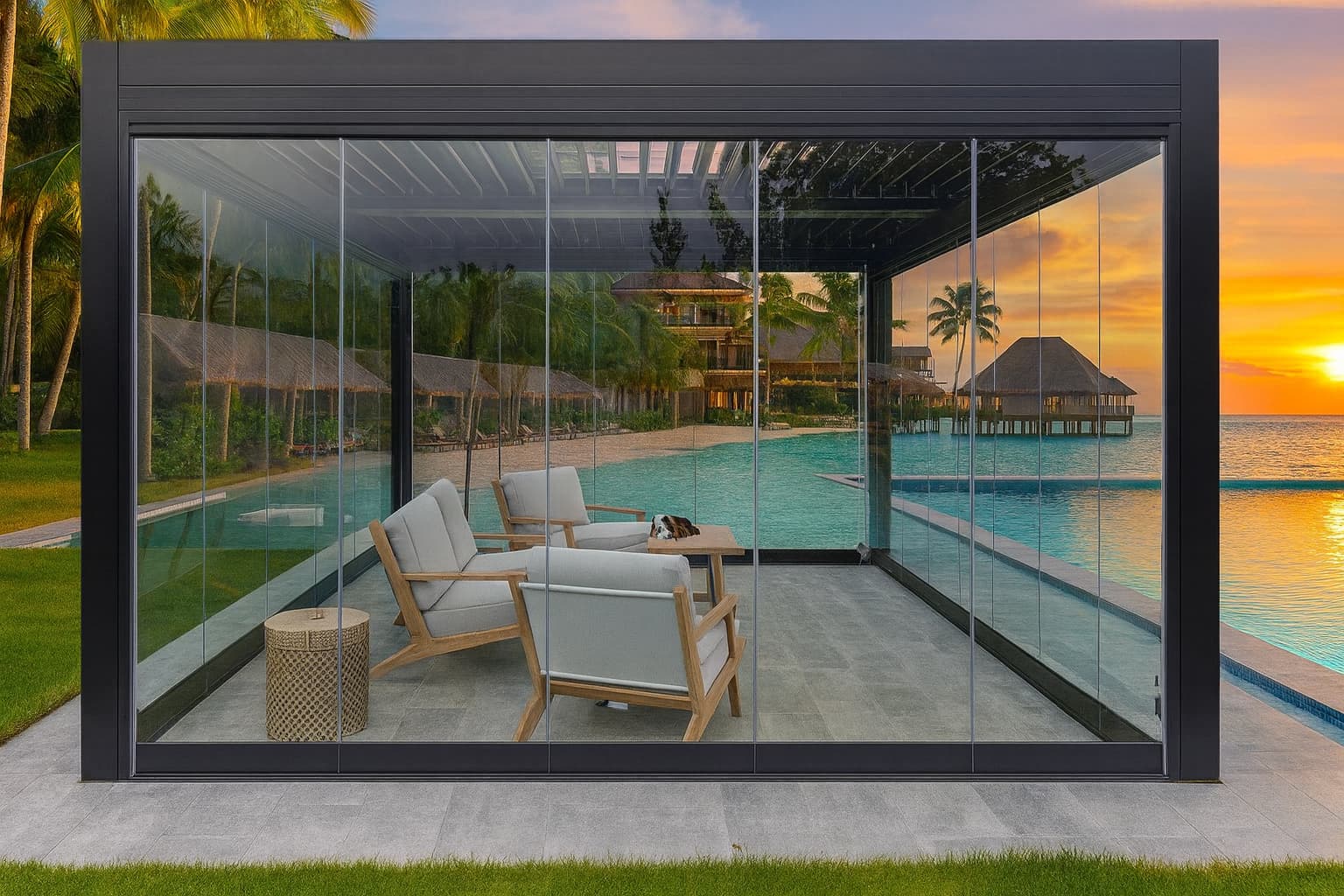 The modular design of the Orion System allows for a wide range of applications — from residential patios and poolside lounges to high-end restaurants, resorts, and cafés.