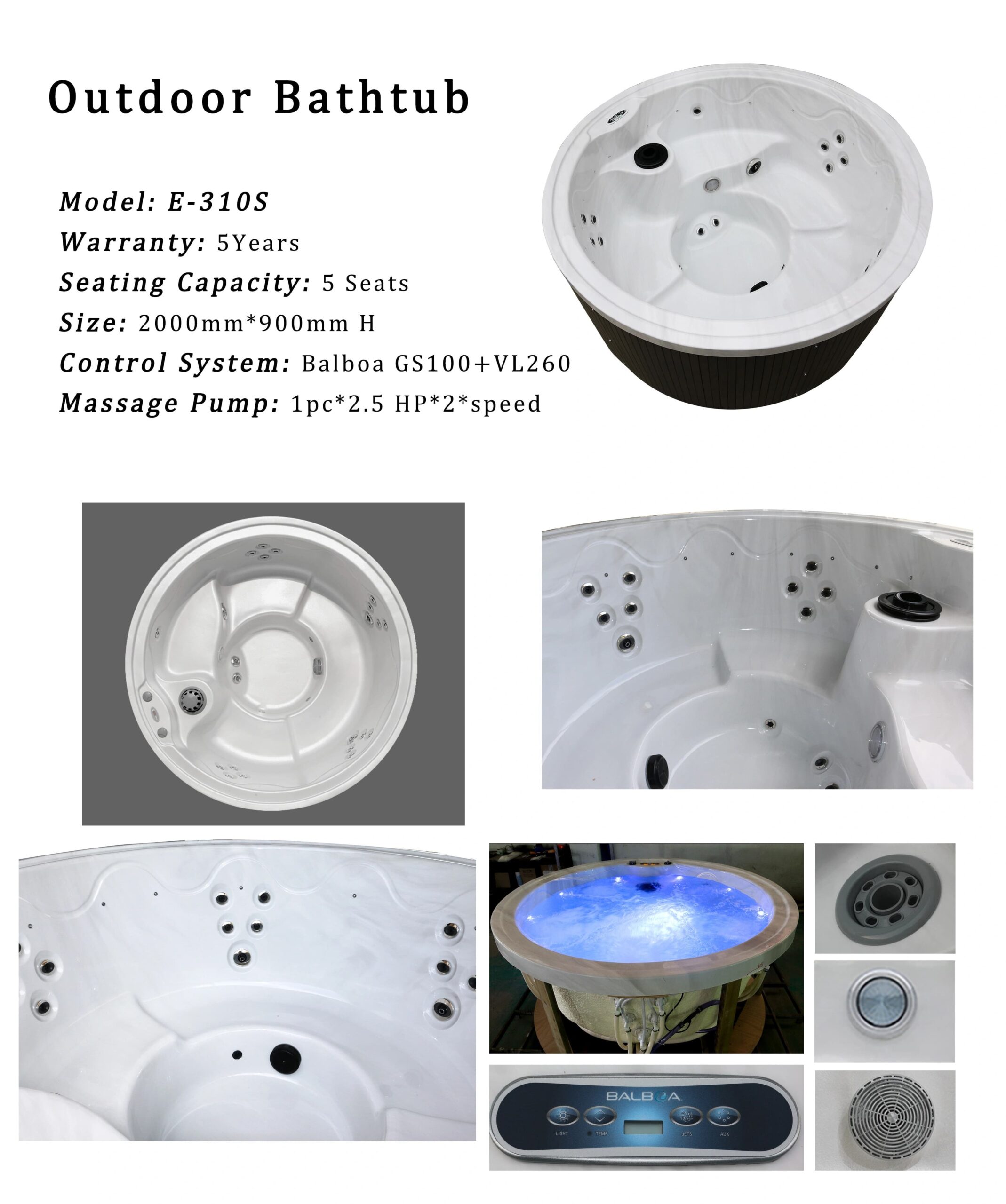 • Control System: Balboa GS100 + VL260 Digital Panel