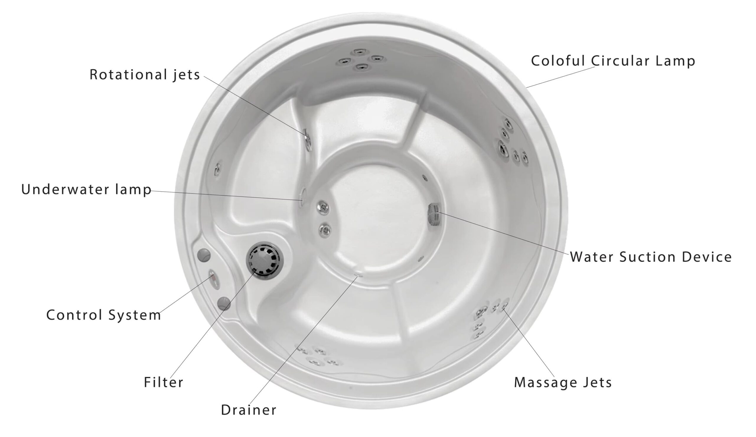 • Massage Pump: 1 × 2.5 HP (2 Speed)