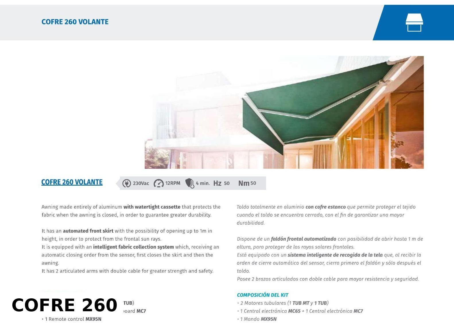 Discover the Lusitania Cofre Collection, a range of advanced aluminum awnings with watertight cassettes designed to protect the fabric, ensure durability, and provide stylish shading solutions for homes and commercial spaces. Each model offers unique features tailored to different outdoor needs, with multiple sizes available for flexible installation.