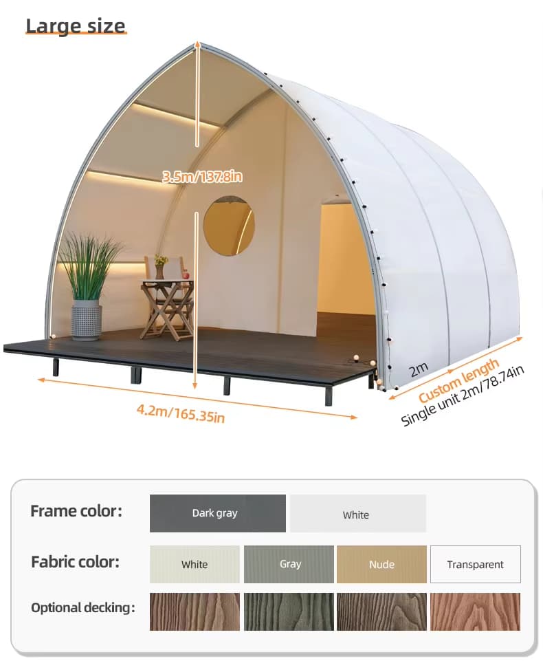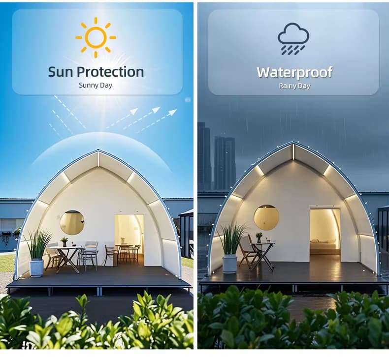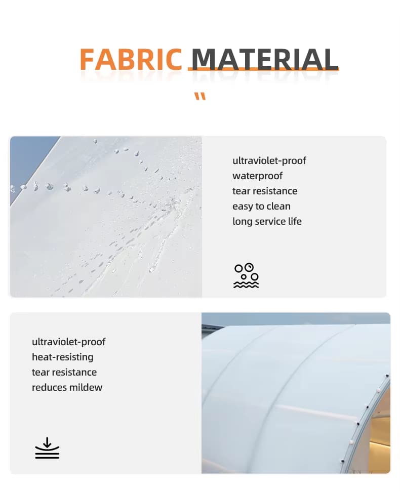 Fabric Material: 650 g/㎡ PVC (UV-resistant, waterproof, mildew-resistant)