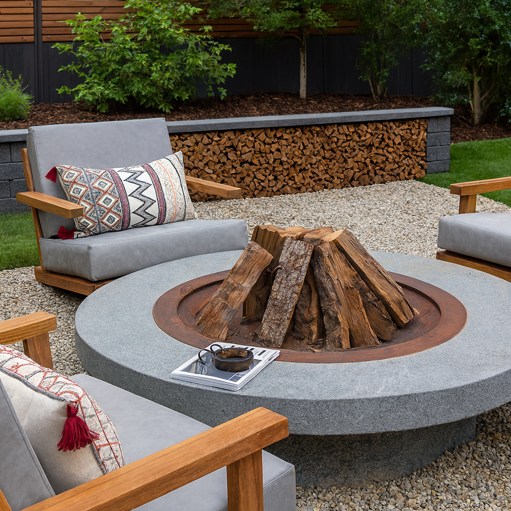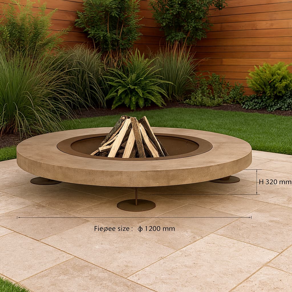 The recessed central fire bowl and wide perimeter edge enhance safety and usability while maintaining a sleek, balanced profile.