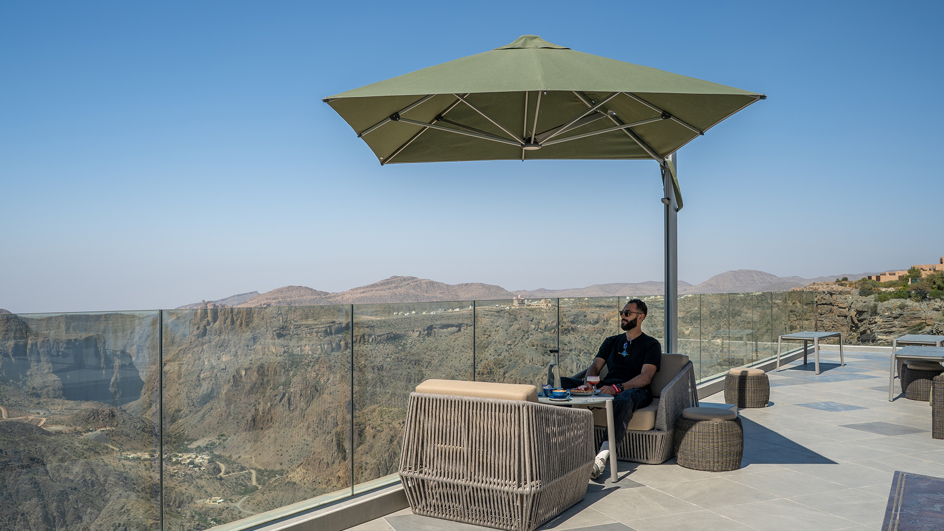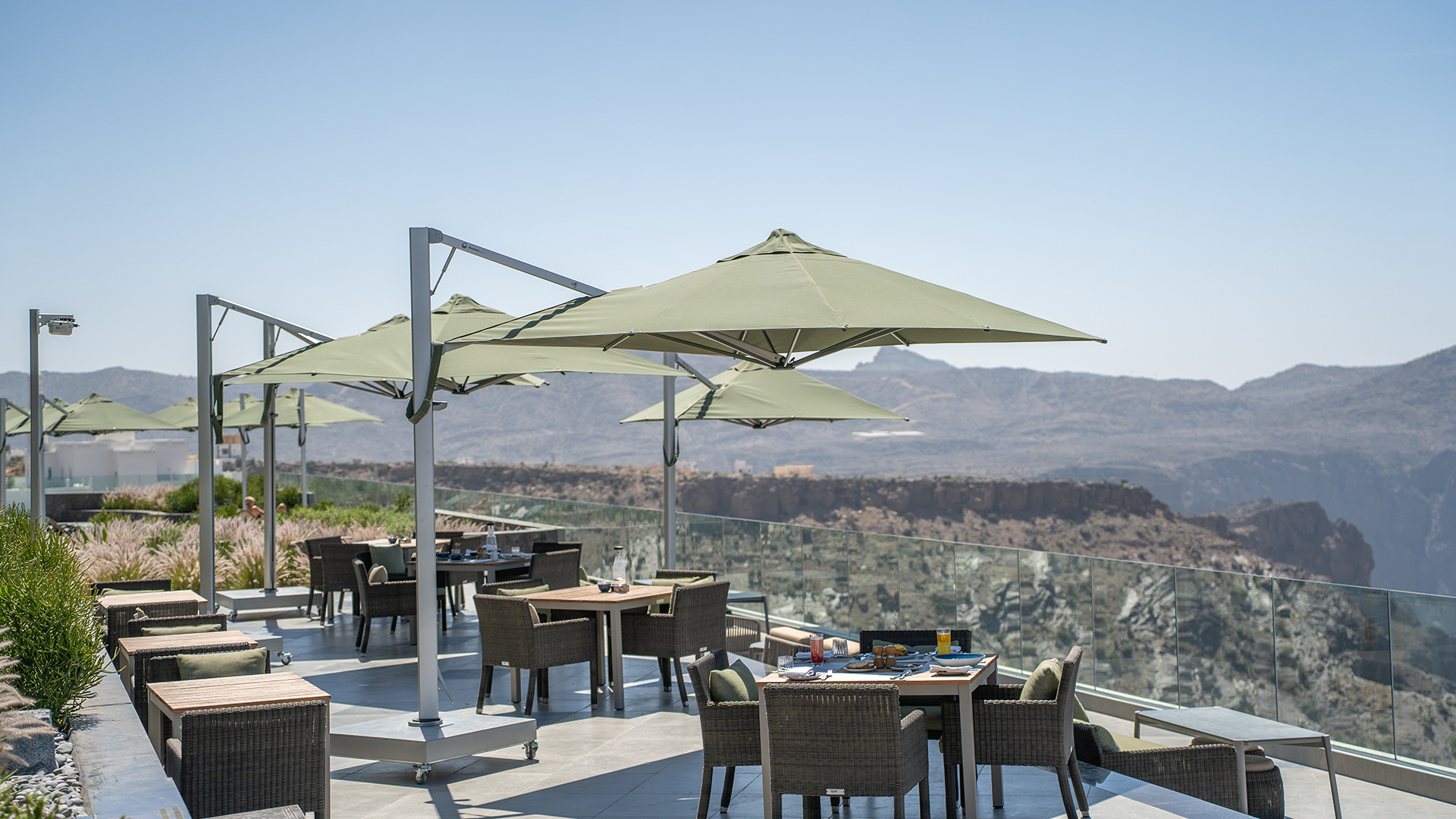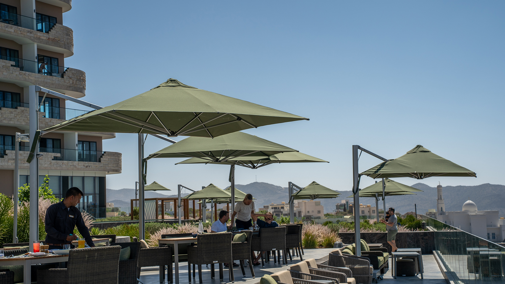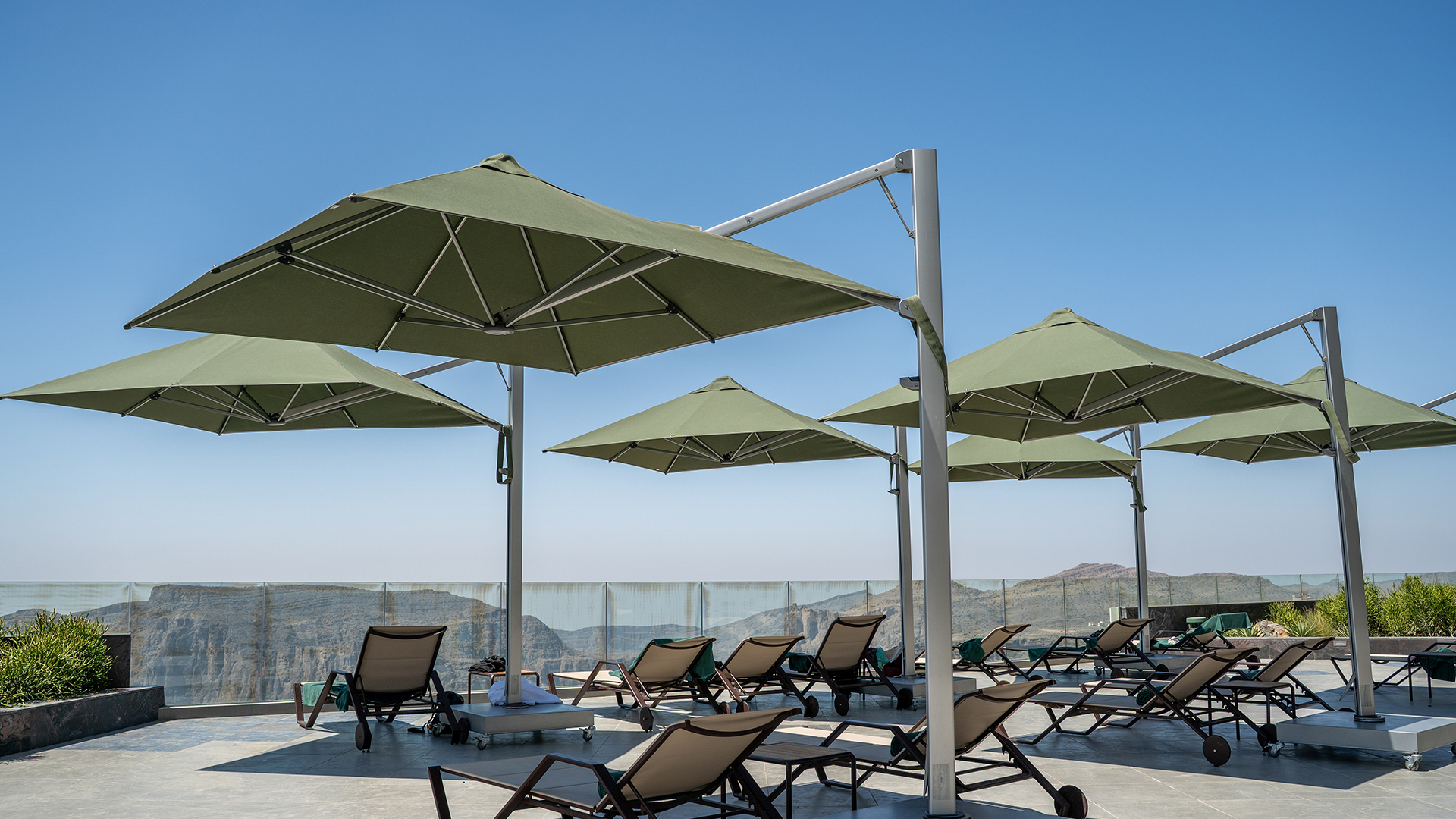 In one of the world’s most challenging high-UV environments, the Shadowspec Serenity™ Cantilever Umbrella has proven to be the perfect shade solution for Hotel Indigo Jabal Akhdar Resort & Spa. Its combination of marine-grade engineering, effortless day-to-day operation, and premium canopy performance ensures long-term durability and comfort in a location where dependable shade is essential.
