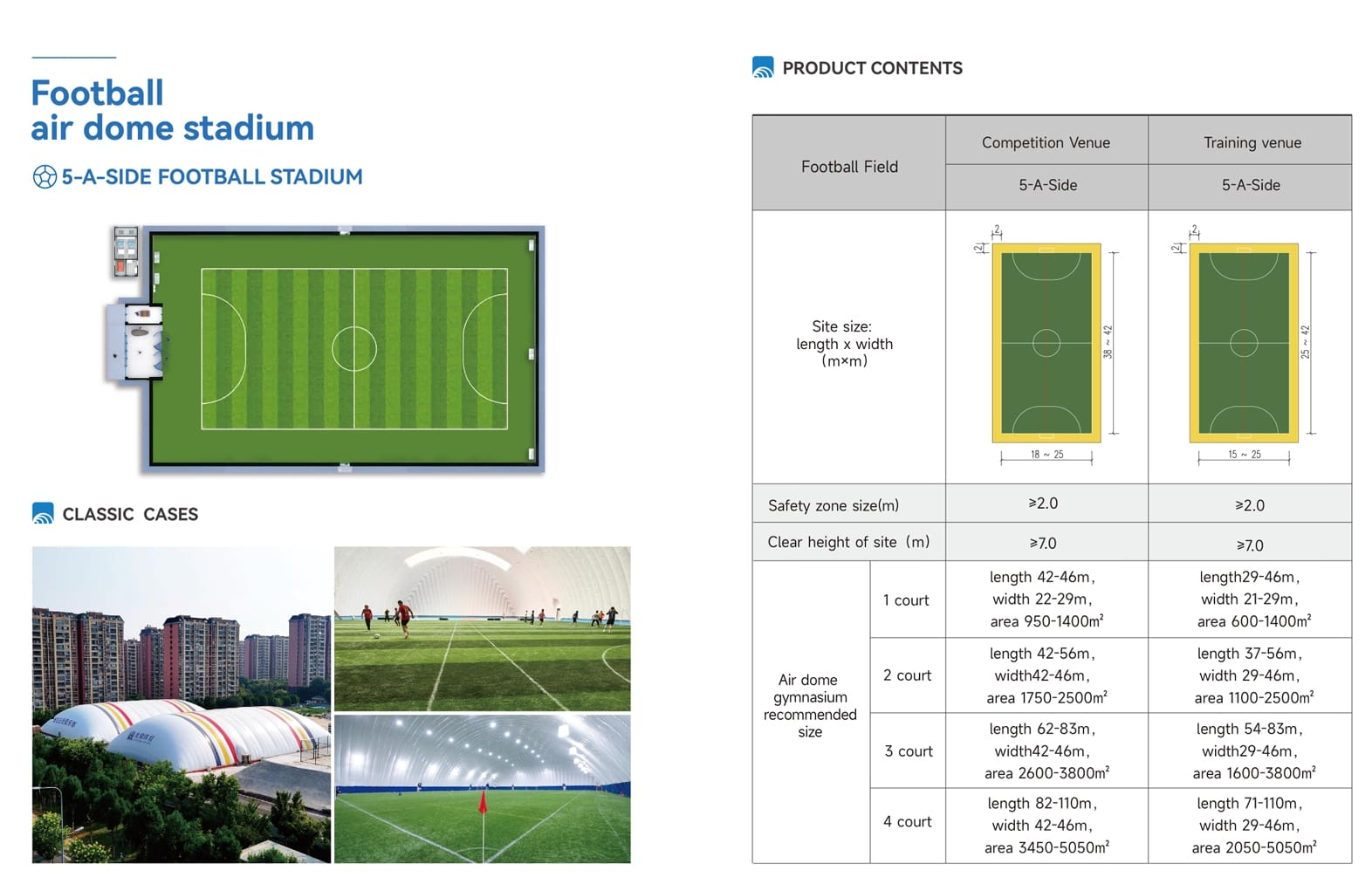 Large-span domes capable of housing full training pitches or multiple futsal courts. -