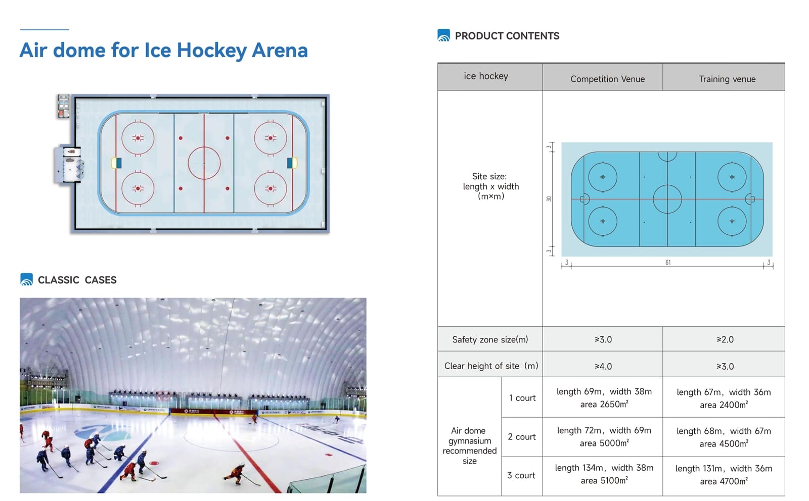 Insulated air domes can support ice hockey and skating rinks with lower energy demands than traditional buildings. -