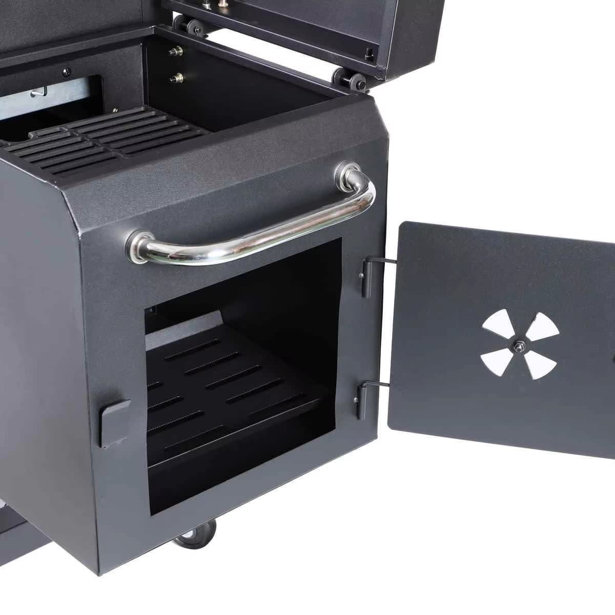 Customize your airflow and temperature by adjusting the side dampers as needed. For even better heat control and smoke management, the lid-mounted stack provides additional ventilation when required.