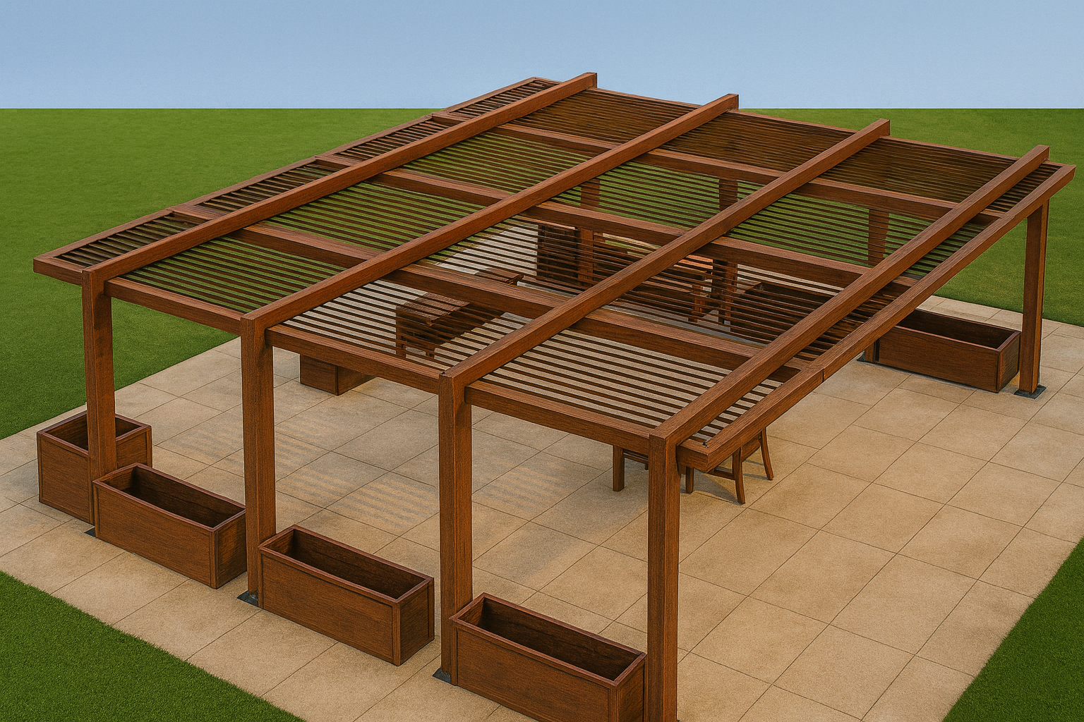 You get the look and feel of a custom-engineered steel pergola at accessible pricing, suitable for both residential and commercial projects.