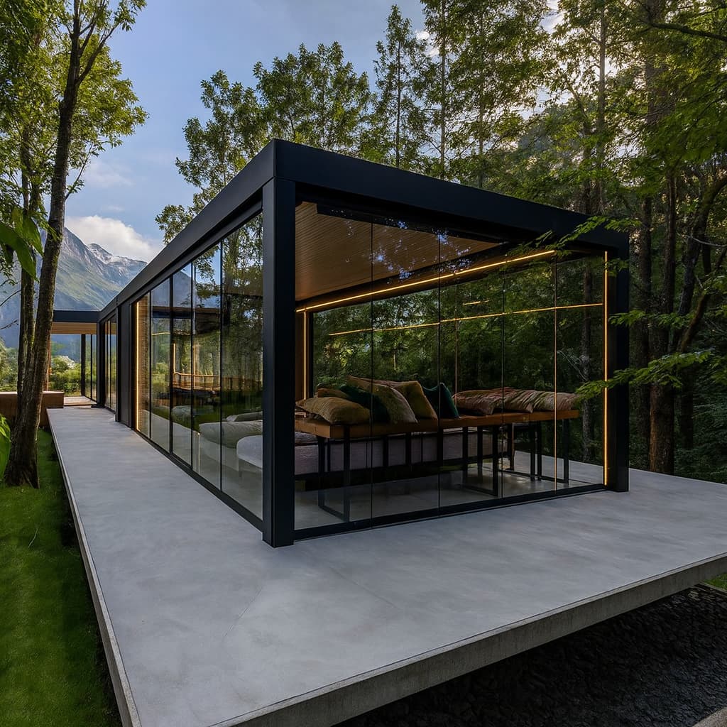 Both options are designed for strength, clarity, and design versatility. Whether you choose glass or polycarbonate, the Aurea Louvre Blades integrate flawlessly into the Orion System’s robust aluminium structure, ensuring long-term reliability and architectural refinement.