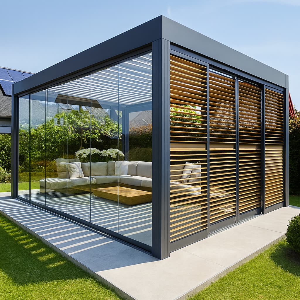 A stylish and practical choice for homeowners who want adjustable daylight and year-round weather protection