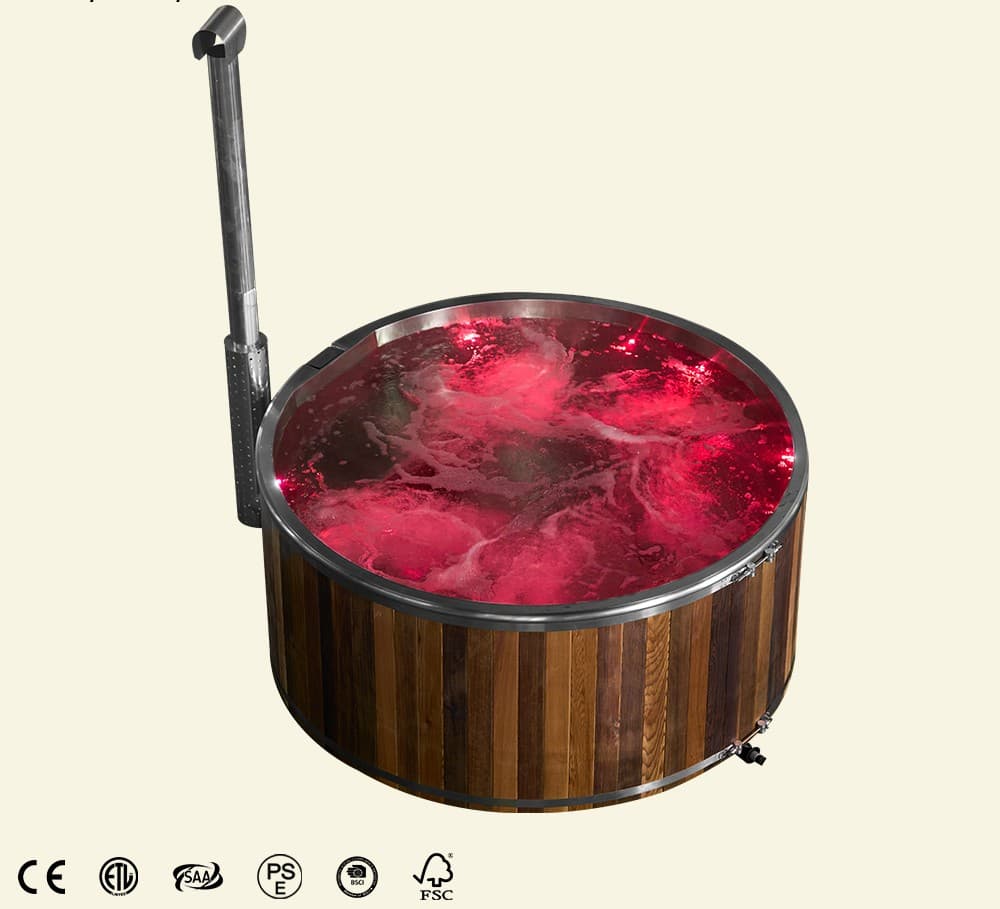 Each Thermæra tub is handcrafted from premium knotless Canadian cedar, valued for durability, insulation, and natural fragrance. The interior 304-grade stainless-steel liner offers corrosion resistance and efficient heat retention.