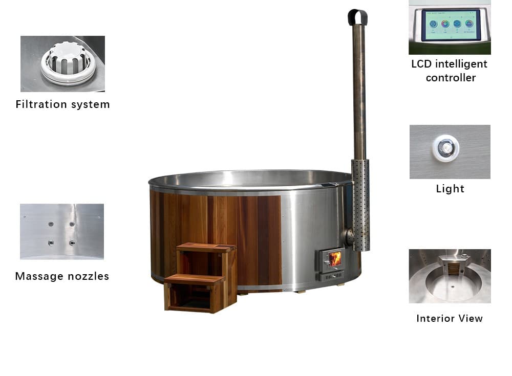 • Stainless-Steel Wood Stove System – Built-in 304 stainless heater for fast, efficient heating and extended heat retention