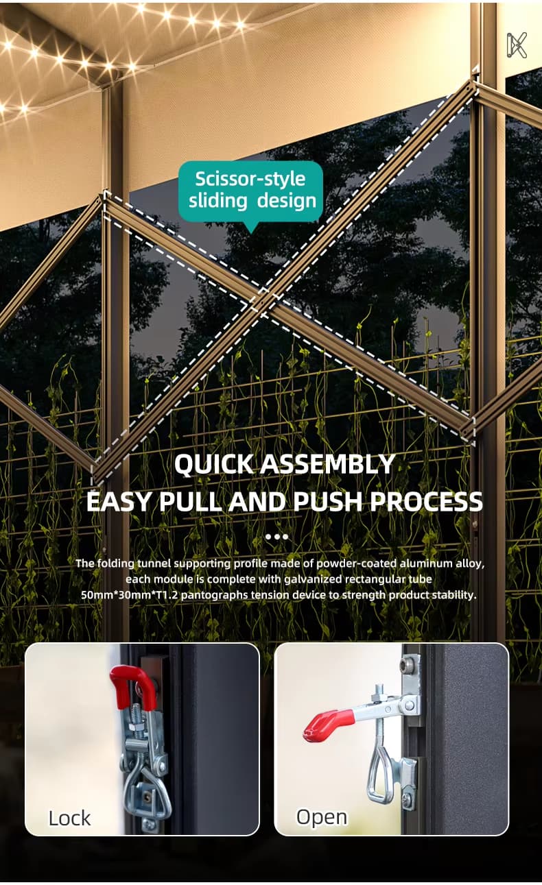 Built for long-term performance, corrosion resistance, and stability in New Zealand and Pacific Island climates.Retractable Scissor Frame System