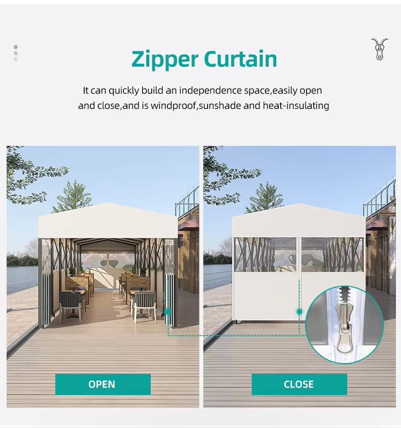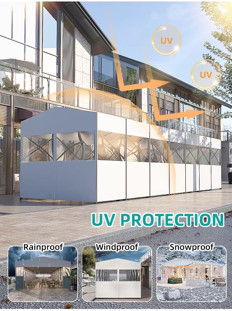 Windproof, sun-shade, and heat-insulated — create enclosed or open spaces in seconds.Nylon Directional Rubber Wheels