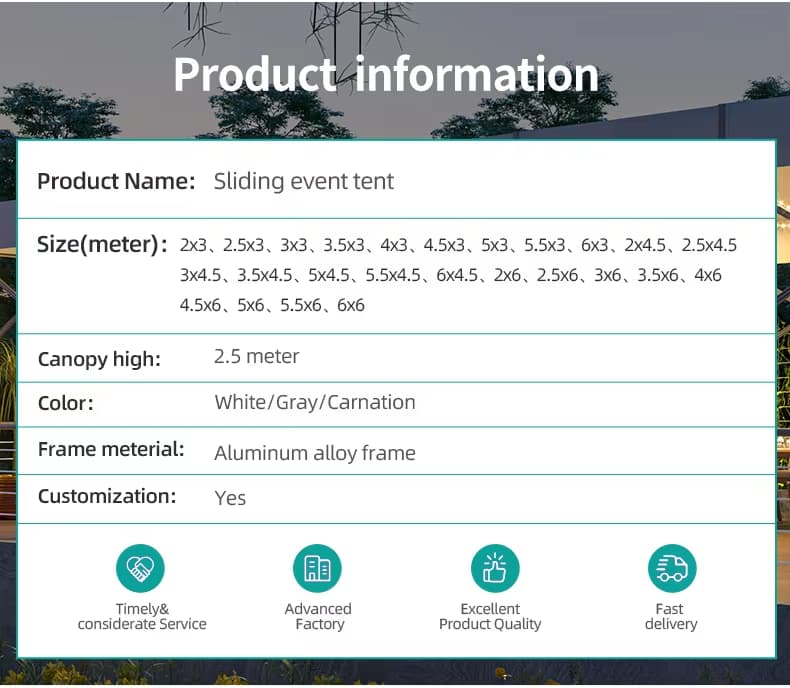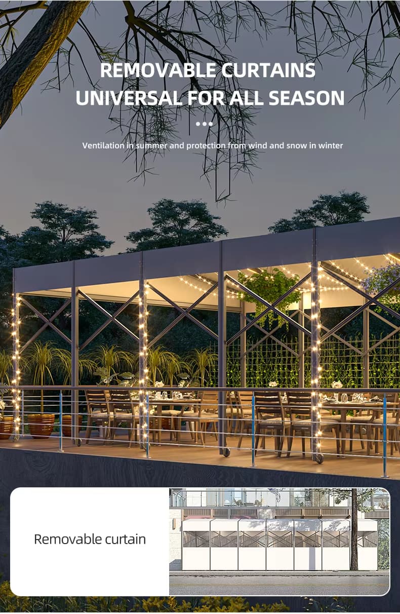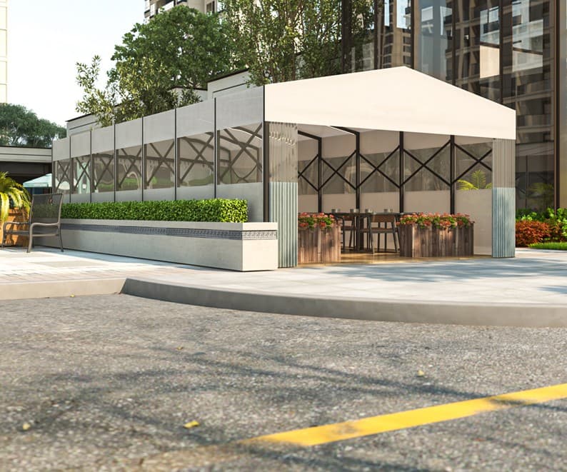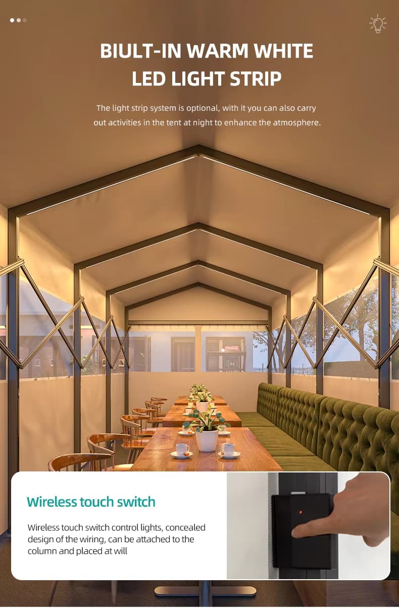 With its aluminum structure and retractable frame, Ventro delivers versatility and elegance suited for both temporary and semi-permanent installations.
